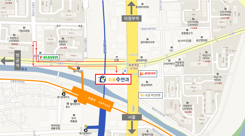ÁöÇÏö 1È£¼±/ÀÇÁ¤ºÎ°æÀüö ȸ·æ¿ª 2¹øÃⱸ·Î ³ª¿À½Å ÈÄ È¸·æ¿ª¾Õ »ç°Å¸®, ȸ·æÇÁ¶óÀÚ 3ÃþÀ¸·Î ¿À½Ã¸é µË´Ï´Ù. |